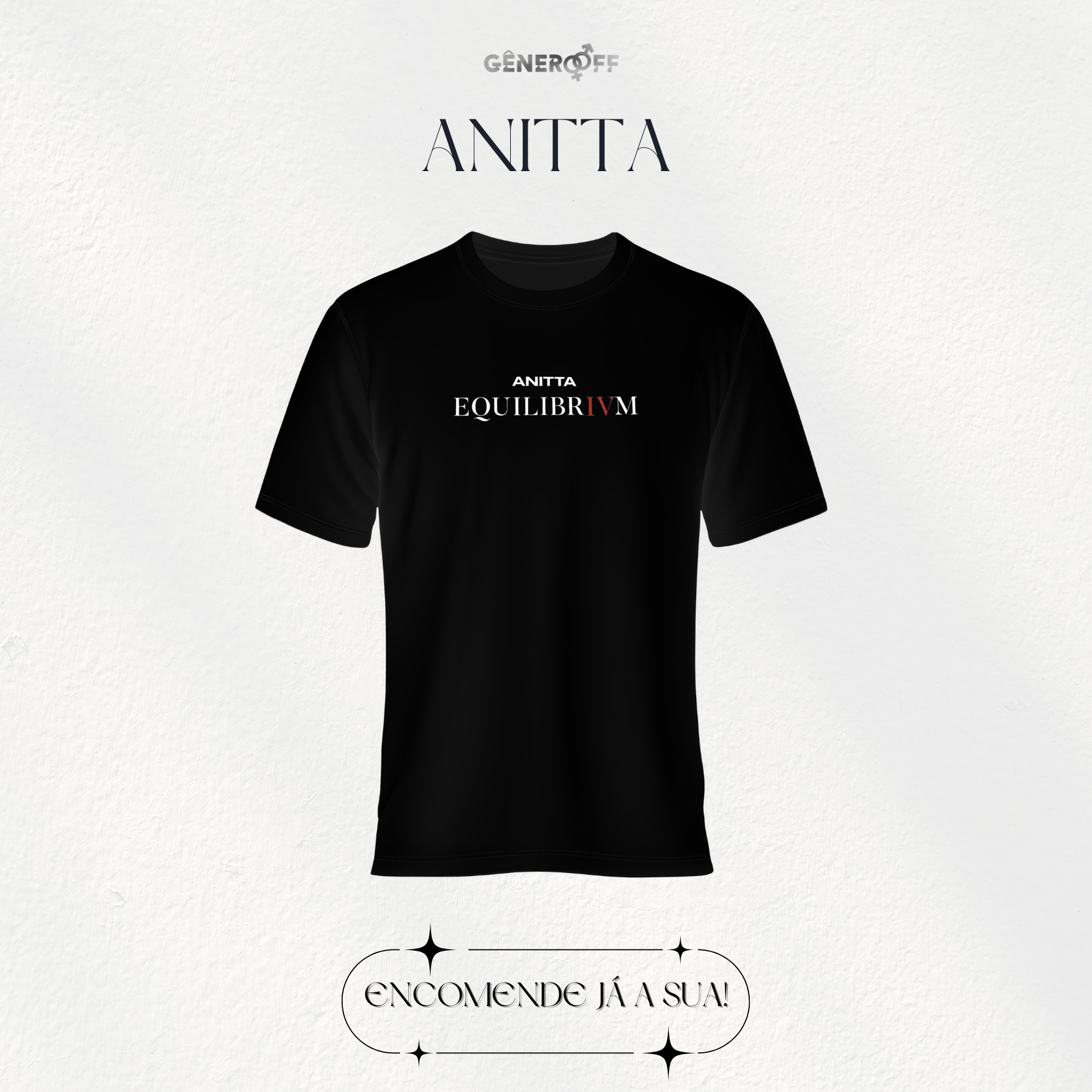 🙏 Entre na vibe equilibrada de Anitta com a camiseta Equilibrium! Inspirada no novo álbum da cantora, essa peça é para quem ama expressar emoções e vivenciar a energia de suas músicas.