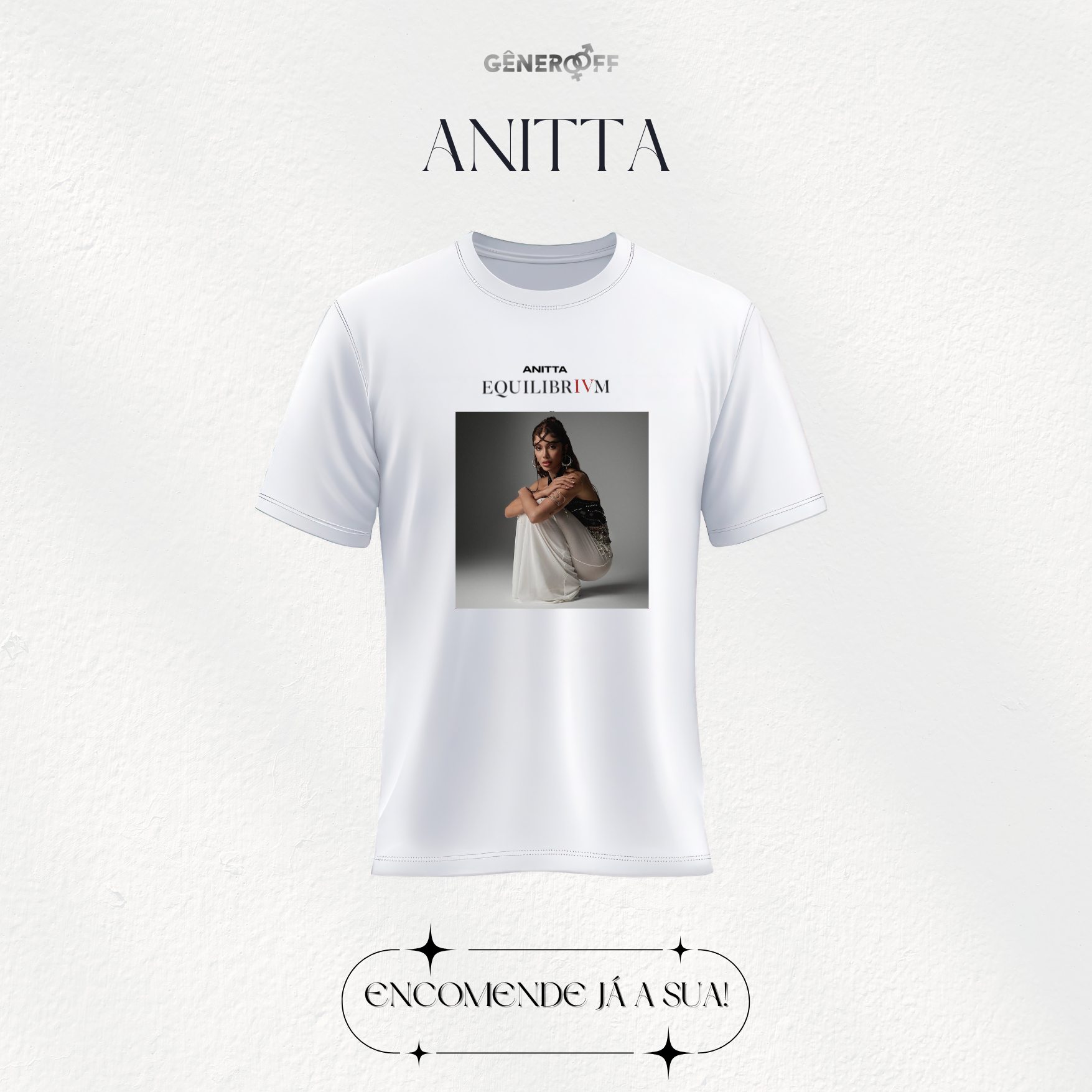 🙏 Entre na vibe equilibrada de Anitta com a camiseta Equilibrium! Inspirada na nova era da cantora, essa peça é para quem ama expressar emoções e vivenciar a energia de suas músicas.